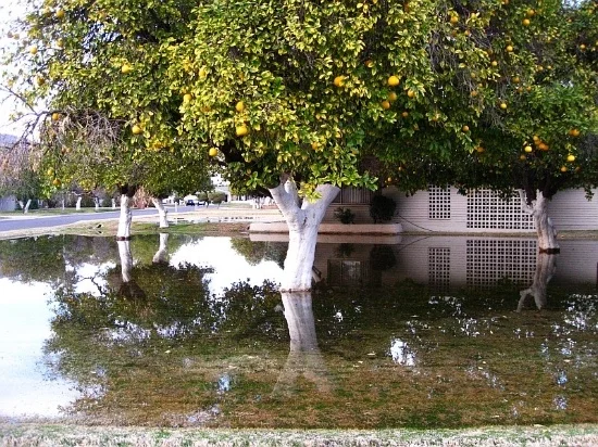 Most new commercial buildings in the Phoenix Metro Valley have a retention basin in the event of a monsoon storm. Parks are being built as natural retention basins, too. But, let's get back to you and your neighbor.